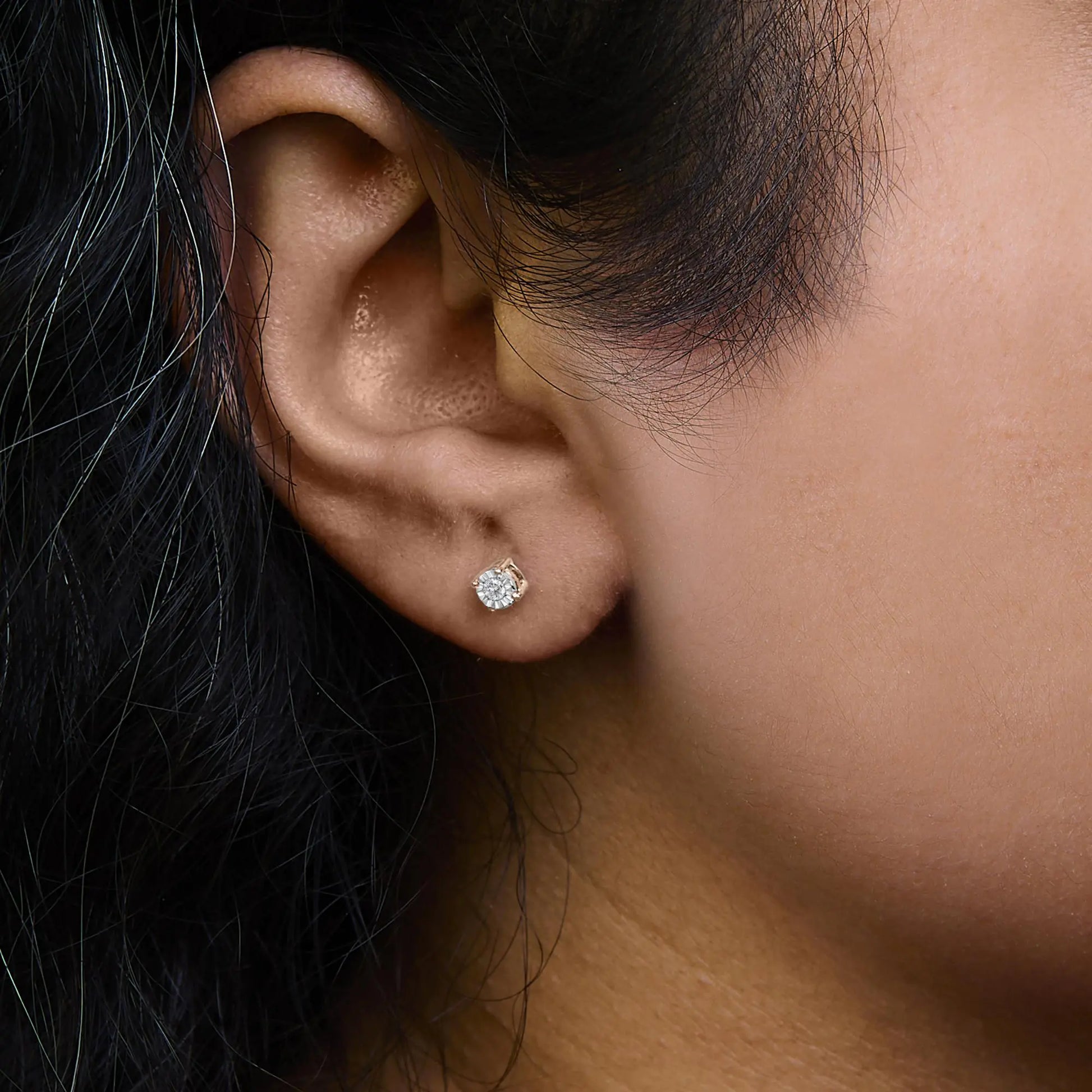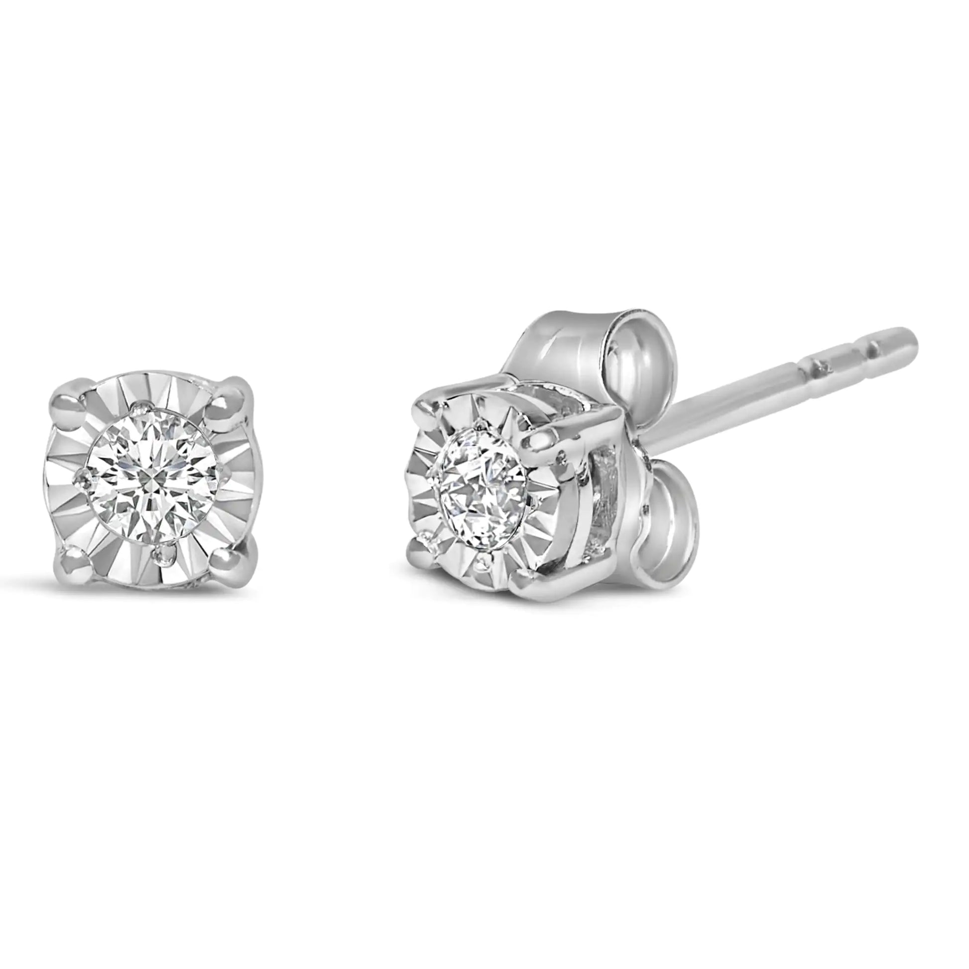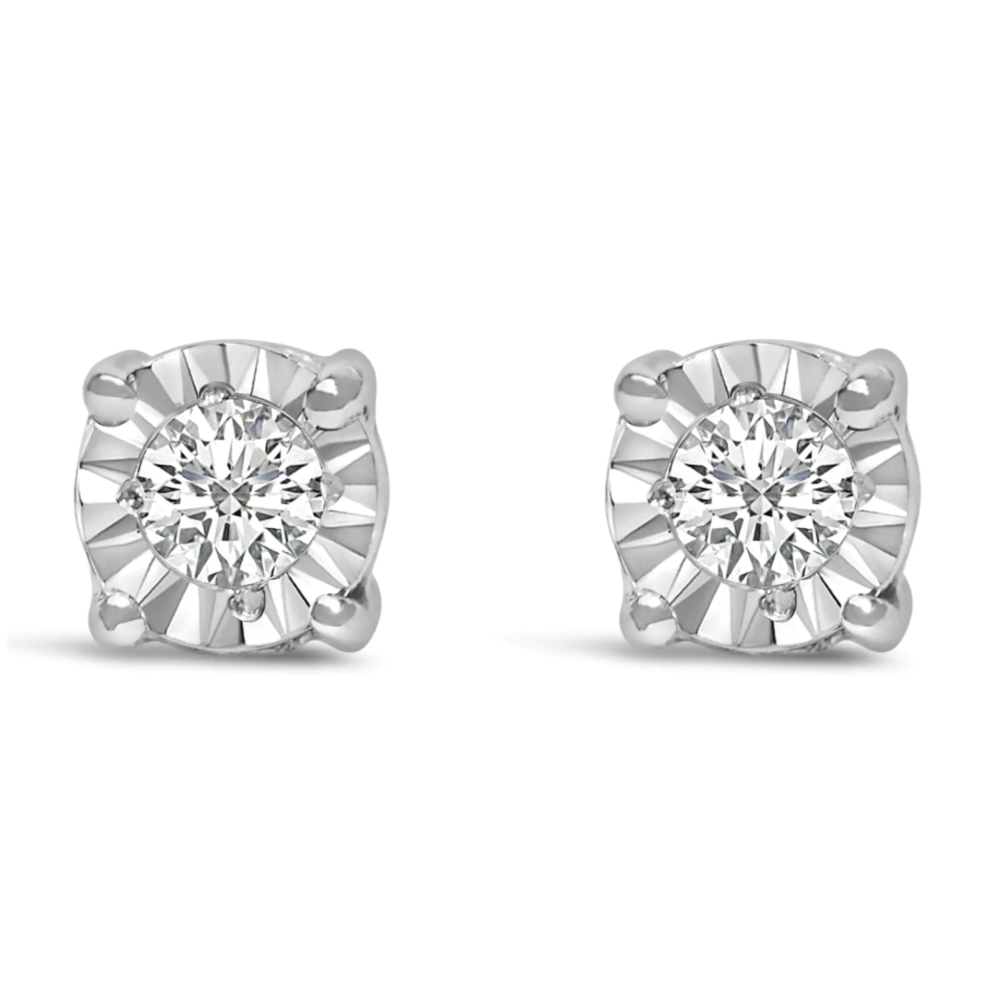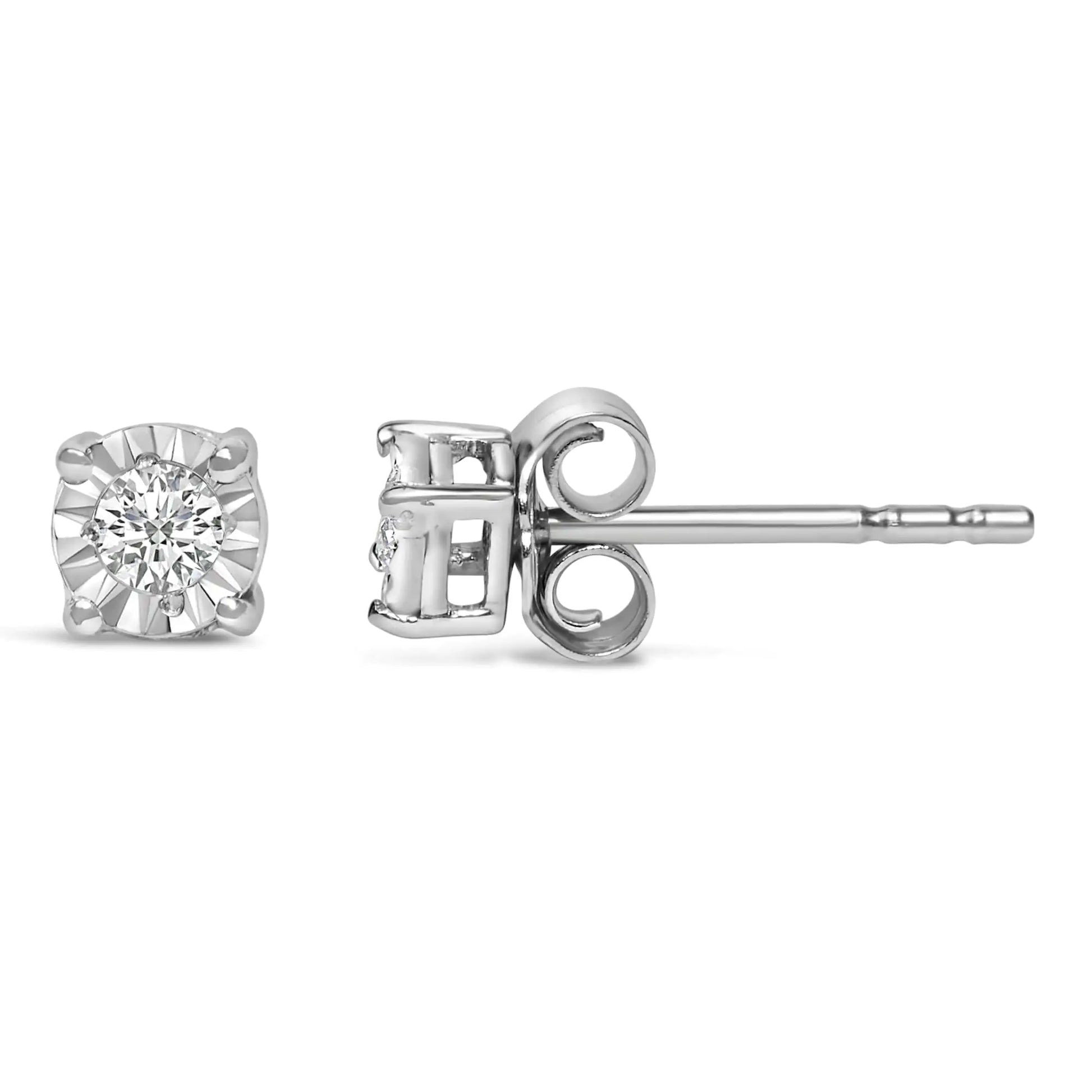 .925 Sterling Silver 1/10 Cttw Round Brilliant-Cut Lab Grown Diamond Miracle-Set Stud Earrings (F-G Color, VS1-VS2 Clarity)